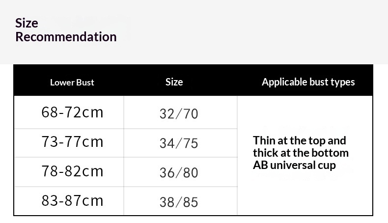 Sizes: 32/70AB (S), 34/75AB (M), 36/80AB (L), 38/85AB (XL)