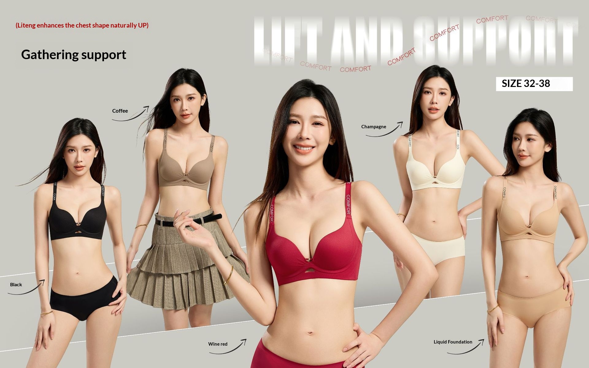 Colors: Black, Champagne, Coffee, Skin Tone, Red